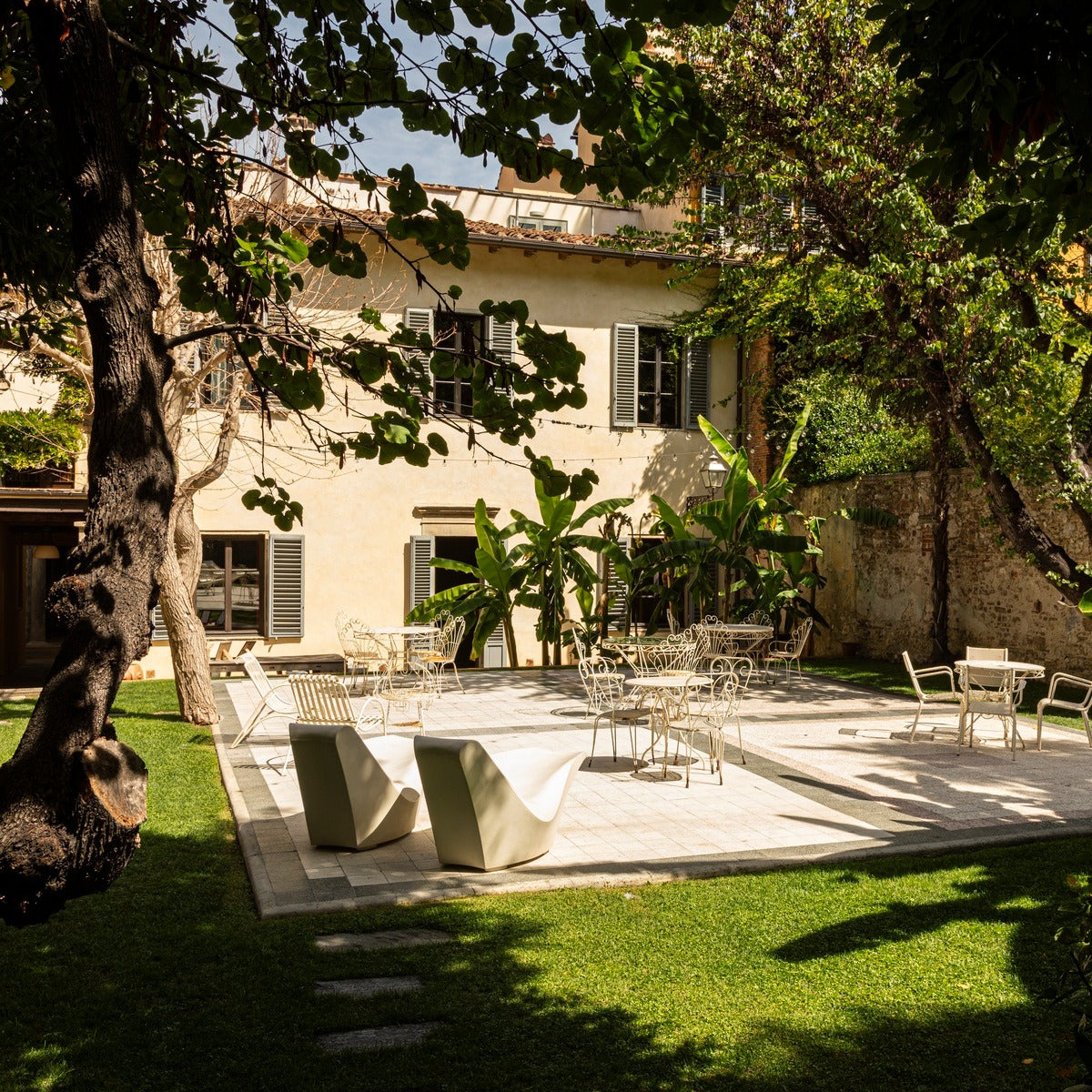 Intimate discussions in Palazzo San Niccolò's private garden.